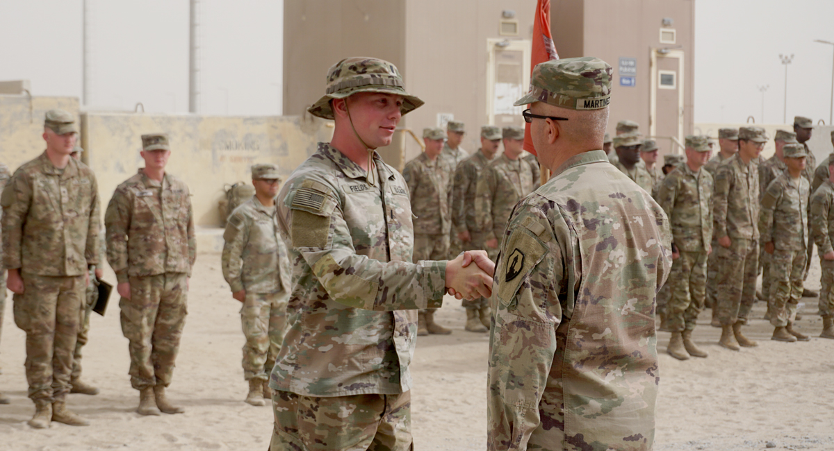 Kenny received an Army Commendation Medal (ARCOM) at the end of the deployment for his coordination and management of his projects while in Jordan. The ARCOM is an award granted for consistent acts of heroism or meritorious service.