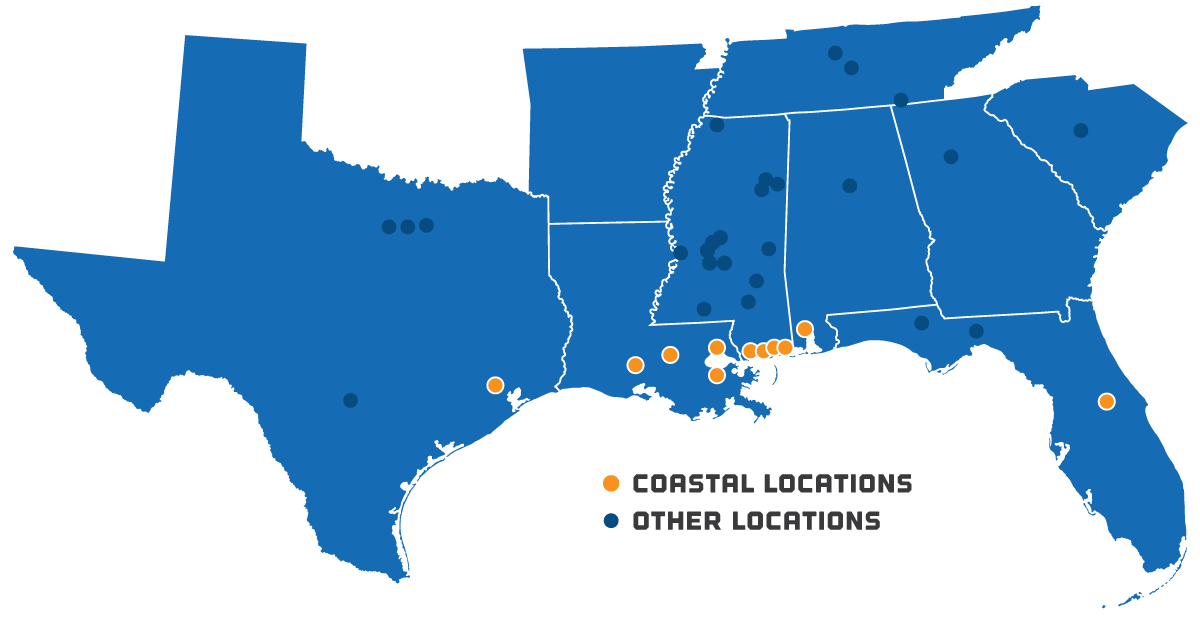 Our 11 strategically positioned coastal offices include: Houston, TX; Lafayette, Baton Rouge, Mandeville, and New Orleans in Louisiana; Bay St. Louis, Gulfport, Biloxi, and Pascagoula in Mississippi; Mobile, AL; and Maitland, Florida.