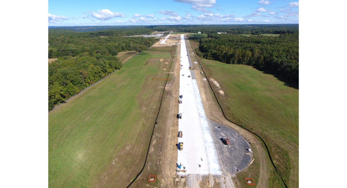One interesting aspect of the project was the use of Portland Cement Concrete (PCC) instead of asphalt. The runway was overlaid with a 5-inch-thick layer of PCC on top of the existing asphalt material and the partial parallel taxiway was reconstructed entirely with PCC. This method was chosen to provide a durable, long-lasting pavement in an area that experiences severe freeze/thaw cycles, to which concrete can withstand much better than asphalt. Slag cement was included in the mixture while ensuring the concrete met the specifications outlined by the Federal Aviation Administration