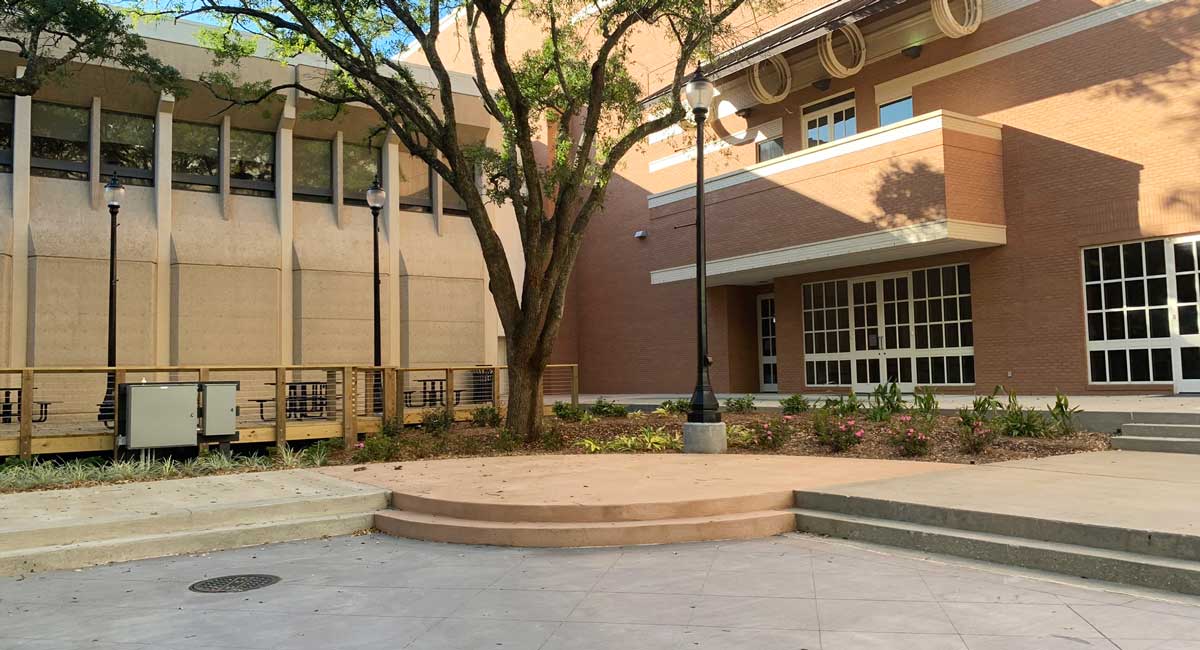 The plaza, which sits between the student union building and the west side