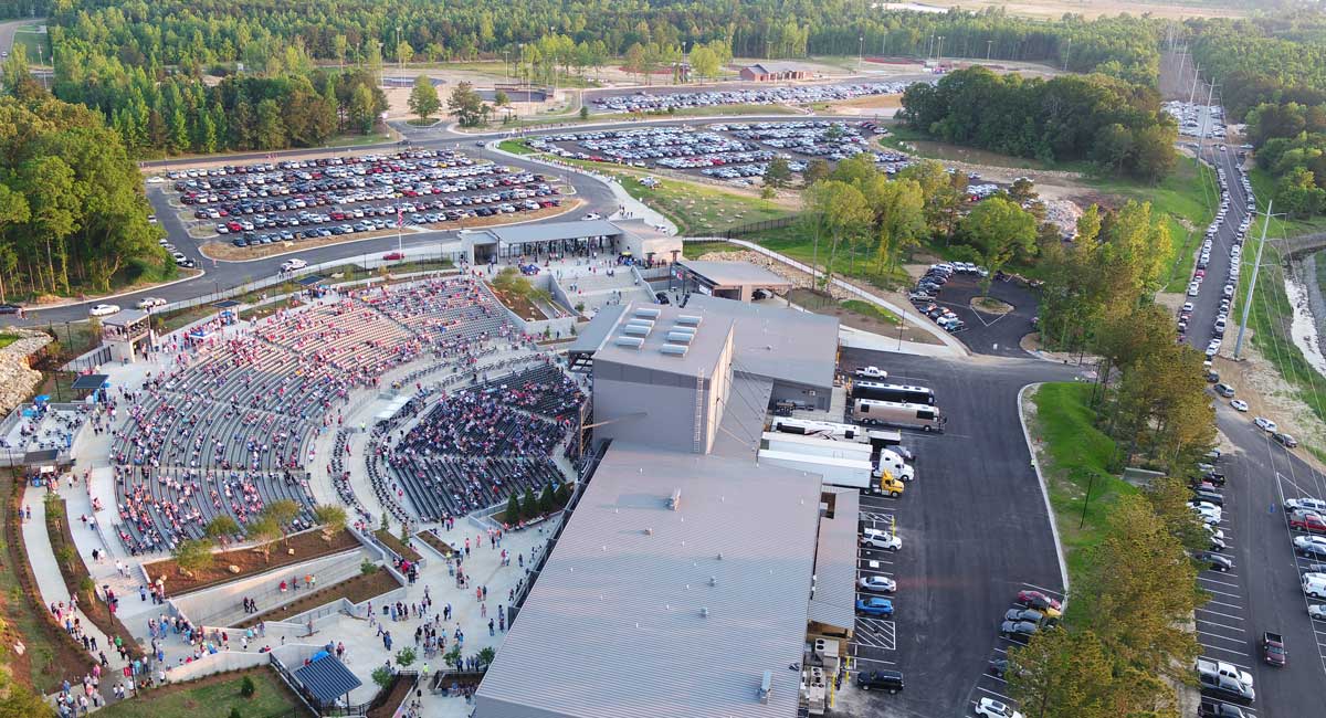 The amphitheater, designed by Neel-Schaffer, opened on April 18, 2018, with country music head-liner Chris Young. Using a drone and fixed video cameras at key intersections, Neel-Schaffer provided traffic and parking monitoring and analysis for the opening night concert.