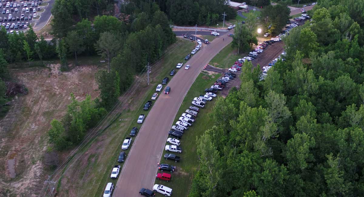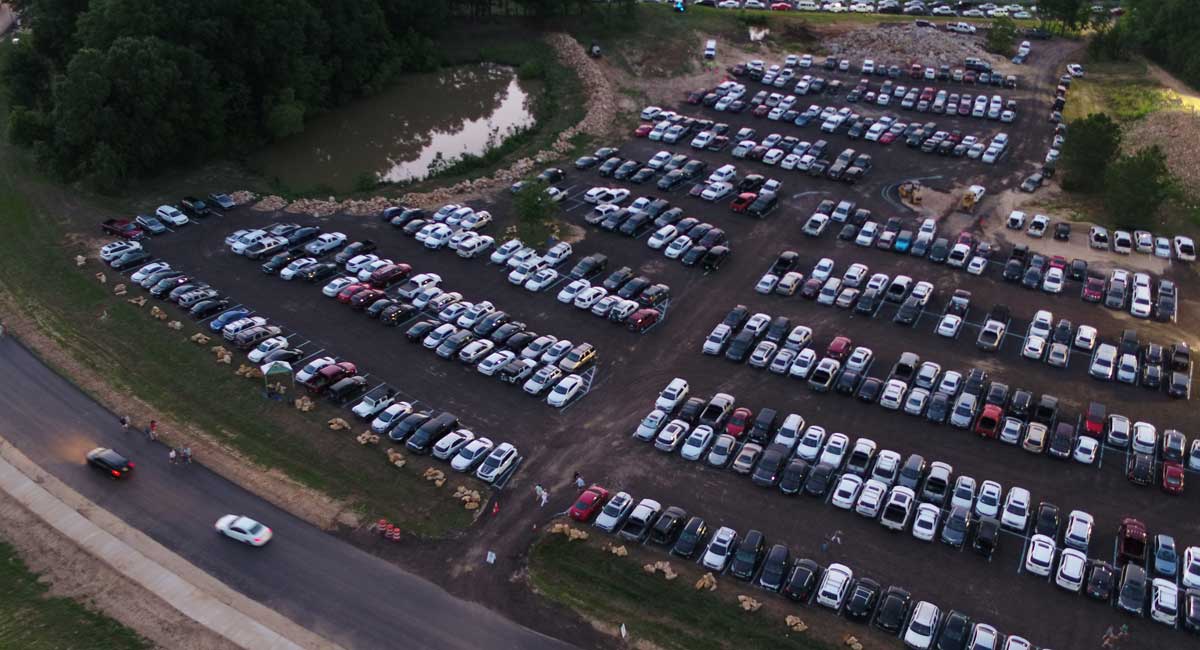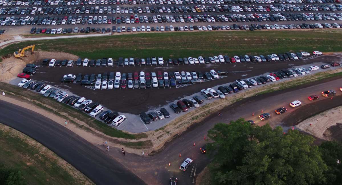 Neel-Schaffer engineers and the Neel-Schaffer drone pilot documented the inefficiencies and captured valuable aerial photography and video footage. Due to FAA limitations, the drone cannot fly after the end of civil twilight, so ground video footage was acquired with a windshield mounted camera after the concert started, while mounted traffic cameras documented the arrival and departure of concert traffic.