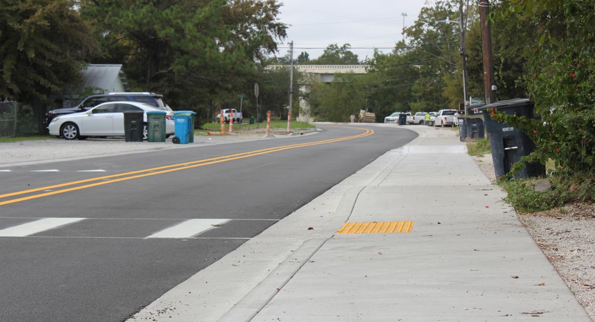 The new curb and gutter section was right-sized to accommodate the traffic and fit within the right-of-way secured by the City. This project provides a vital pedestrian link between the US 90 bridge and beachfront walkway to downtown.