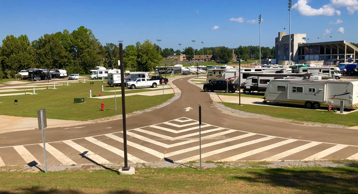 Completed in October 2018, the new lot has access roads from SR 552. The $5 million project included widening, signage and landscaping along SR 552, and improvements to an existing RV parking lot that serves Spinks-Casem Stadium, home of the Braves’ football team.