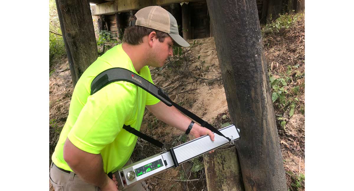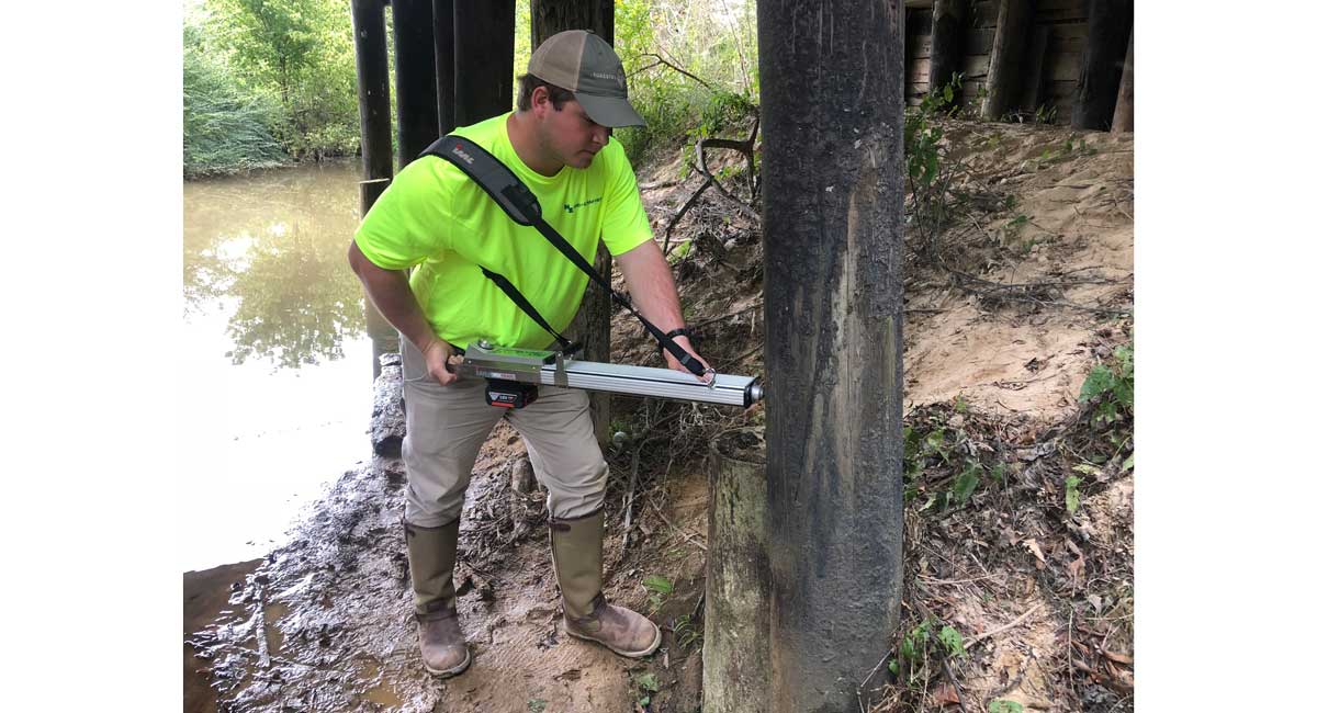 Neel-Schaffer inspectors use new Pile Resistographs to test timber piles during the inspections performed in this project.