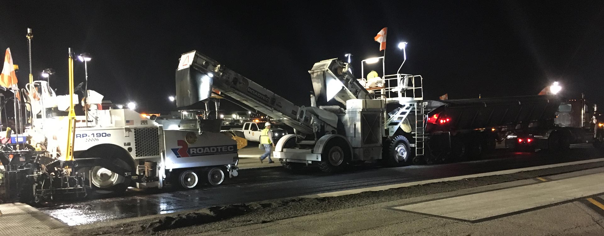 The project included milling and replacing the asphalt in nightly doses, usually between 10:30 p.m. and 4:30 a.m. “We would shut the runway down soon after the last arriving flight each night,” said Overstreet. “That meant as early as 9 p.m., but sometimes as late as 1:30 in the morning. Sometimes if things were running too late, we’d call that night off and wouldn’t work.”