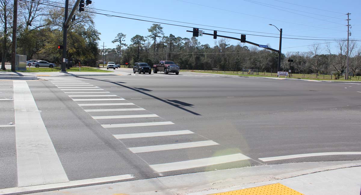 The existing section of roadway was two lanes, with open-ditch drainage. It was widened to four lanes, with curbs and gutters, a raised median, center turn bays, a five-foot sidewalk and a 10-foot multi-use path. The comprehensive project included new sanitary sewer infrastructure with the construction of a new regional lift station, and improvements to the Lamey Street Lift Station. In addition, the project installed upgraded lighting at the intersection of Popp’s Ferry Road and Cedar Lake Road that includes lighted street signs, and new mast-arm traffic signals.