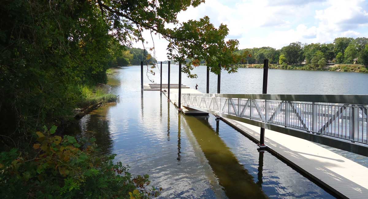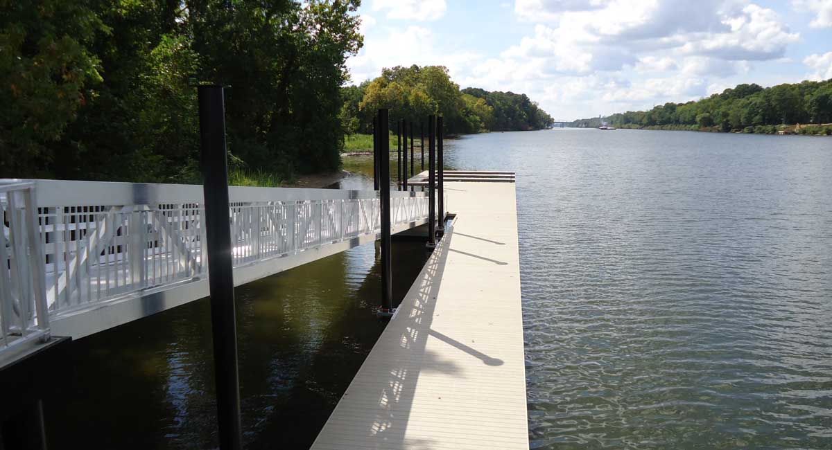 This project required special design services of deep foundations, including design of a piling system and design and detailing for concrete pile caps; design for approximately 440 feet of site retaining walls; and design of structures for dock/boat access, including pile supported concrete design for access slabs and low concrete walls, and design for anchorage of existing floating dock that was relocated.