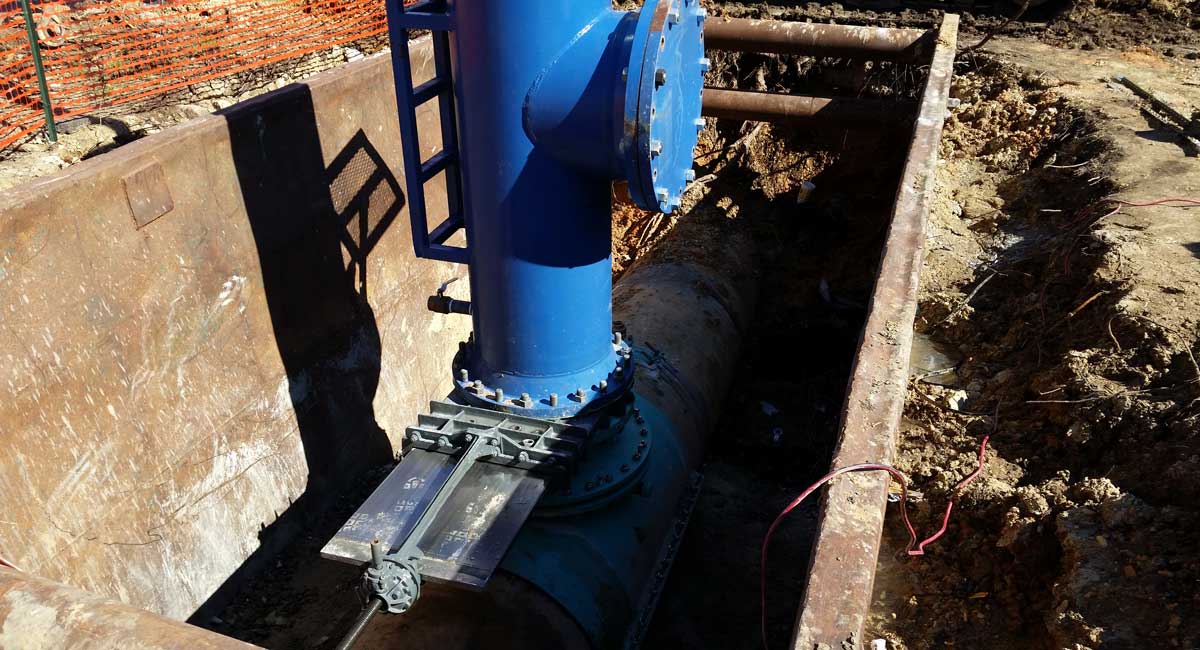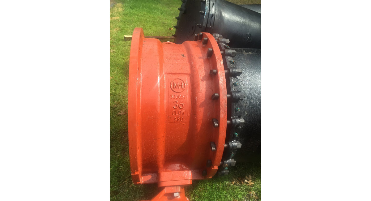 After adequate flow was ensured, an emergency declaration was made, and bids were received in January 2016. Materials, including a 36-inch line stop that required custom fabrication, were ordered.