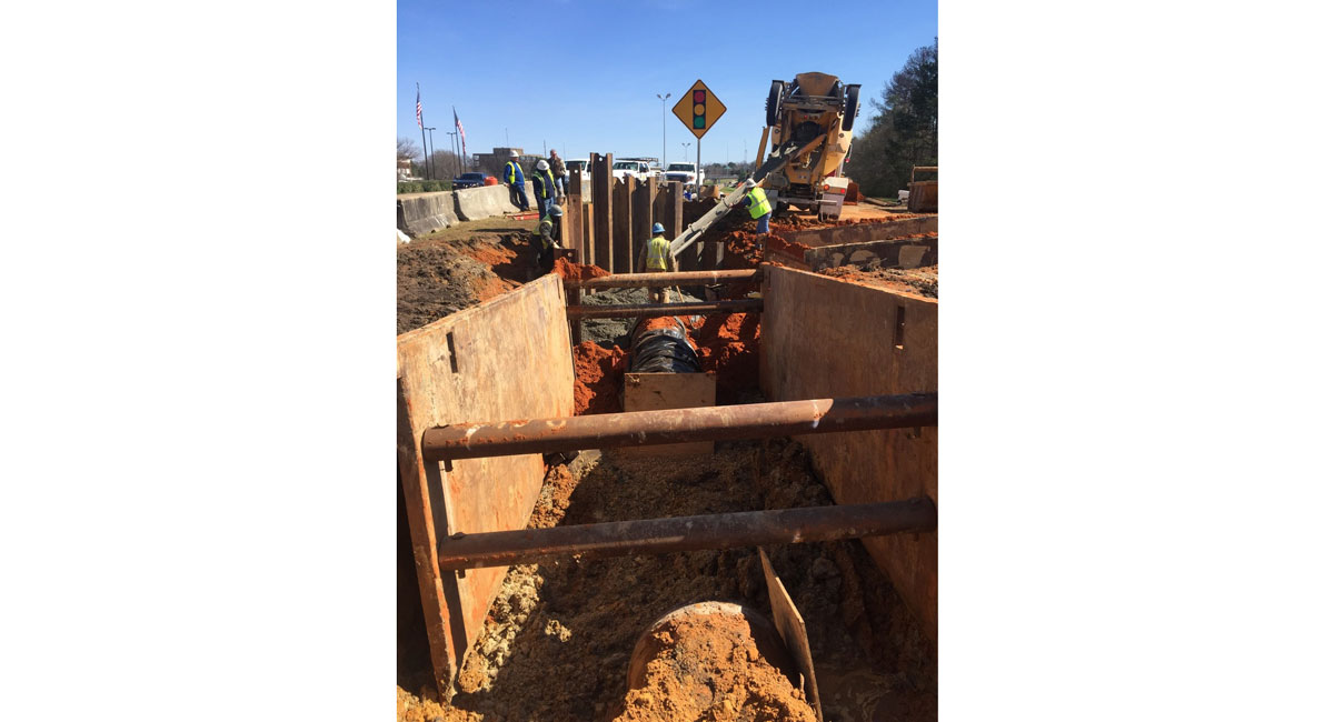 In the fall of 2015, a joint opened on the prestressed concrete water line under the road, and water began to ooze to the surface of the road. When this became hazardous, the City of Jackson closed the two eastbound lanes to traffic, and Neel-Schaffer was selected to design an emergency repair to stop the leak and save the deteriorating pavement.