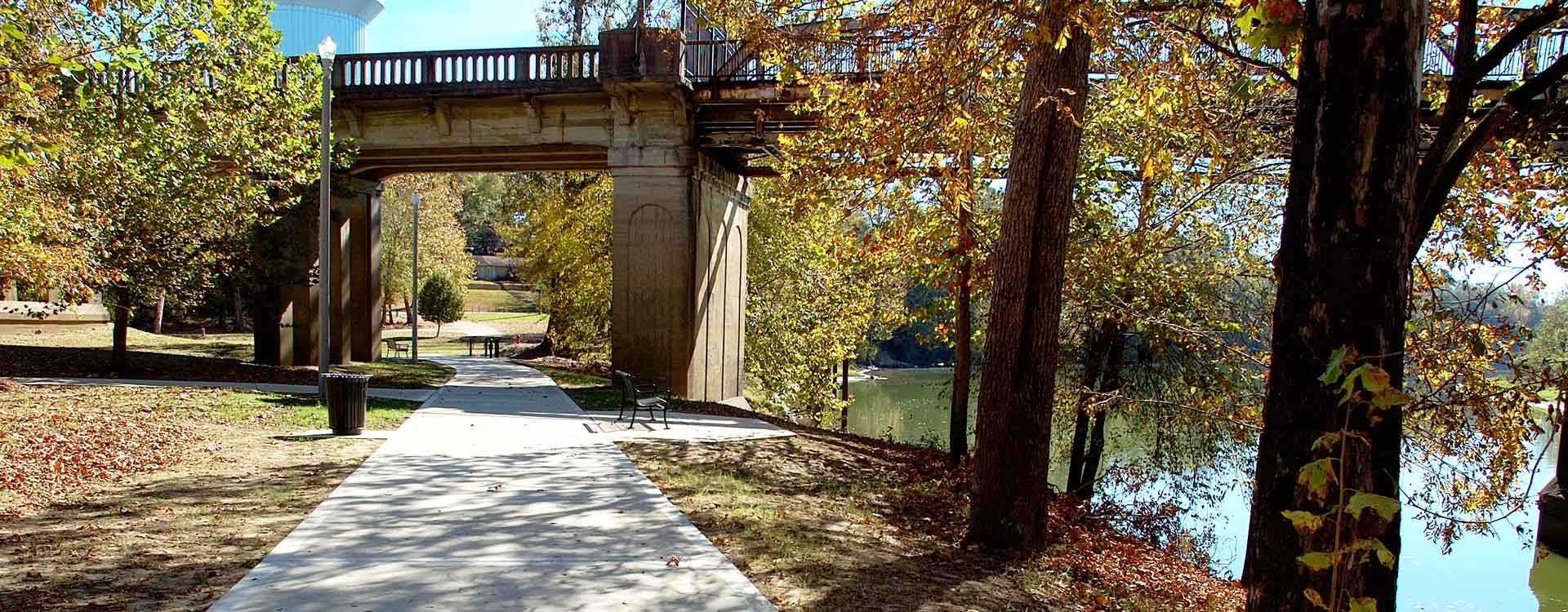 The Riverwalk is a concrete walking/biking path that meanders along the banks of the Tombigbee River. It runs 1.25 miles from Riverside Park located at Second and Main Streets in Columbus through a wooded area along the river. Land based access to the trail is limited to designated areas, while river traffic is accommodated by a pier.