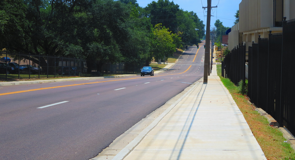 West Street, a northbound principal arterial connecting downtown Jackson, was totally reconstructed in one area. Because of Yazoo clay and aging, leaking water lines, driving on West Street near Millsaps College had become like a roller coaster ride, with cars having to slow to a crawl to traverse humps in the crumbling road while dodging potholes and broken asphalt.