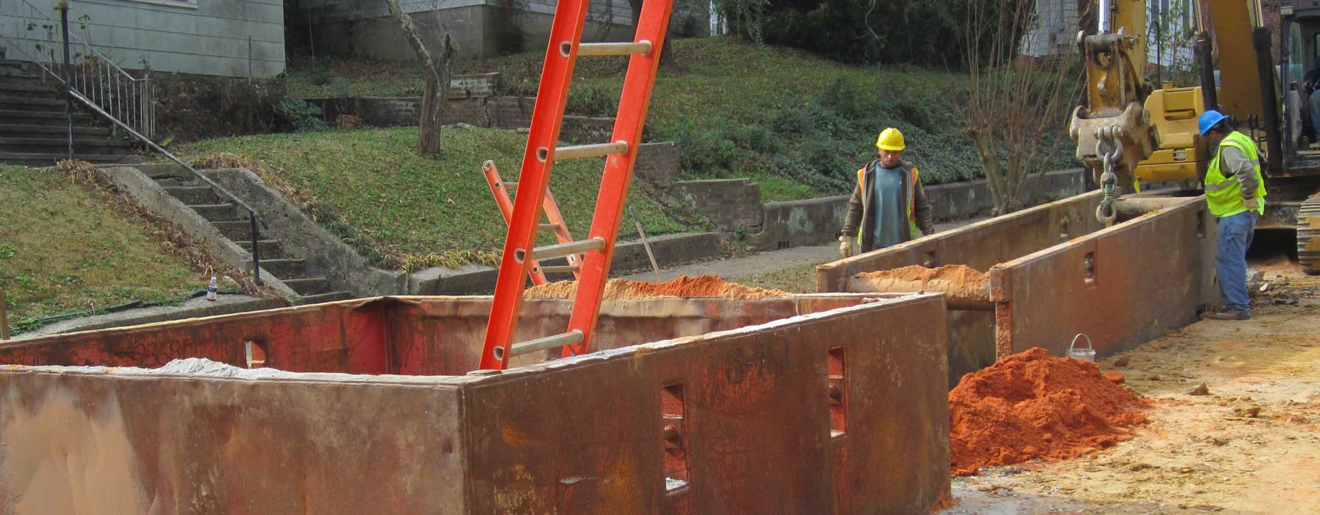 Phase I of the project was constructed from 2010-2011 and consisted of replacement of approximately 9,800 LF of 8-, 10-, 12-, 15-, and 18-inch Truss, Terra Cotta, and Concrete pipe with new SDR-26 PVC or Ductile Iron sewer pipe. An additional 19,600 LF of the dilapidated sewer system was rehabilitated with trenchless methods of cured-in-place pipe (CIPP) installation. Approximately 58 new sewer manholes were installed, and another 70 manholes were rehabilitated according to cost effectiveness and environmental sensitivity.