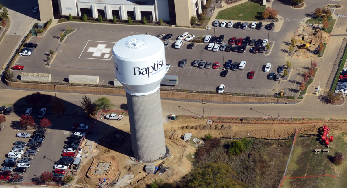 Baptist contracted with Neel-Schaffer to design an independent potable water supply for the center that would also provide sufficient storage and distribution capacity to meet fire protection requirements for the campus. A hydraulic analysis was performed to determine water main sizes and storage requirements. The system designed by Neel-Shaffer included two deep wells (one at 700-gallons per minute and one at 400-gallons per minute) drilled into the Sparta formation, and a one-million gallon composite water storage tank, together with approximately 3,000 feet of ductile iron pipe that ranges from 6 to 16 inches in diameter. Also provided was a chloramination system, housed in a chemical building.
