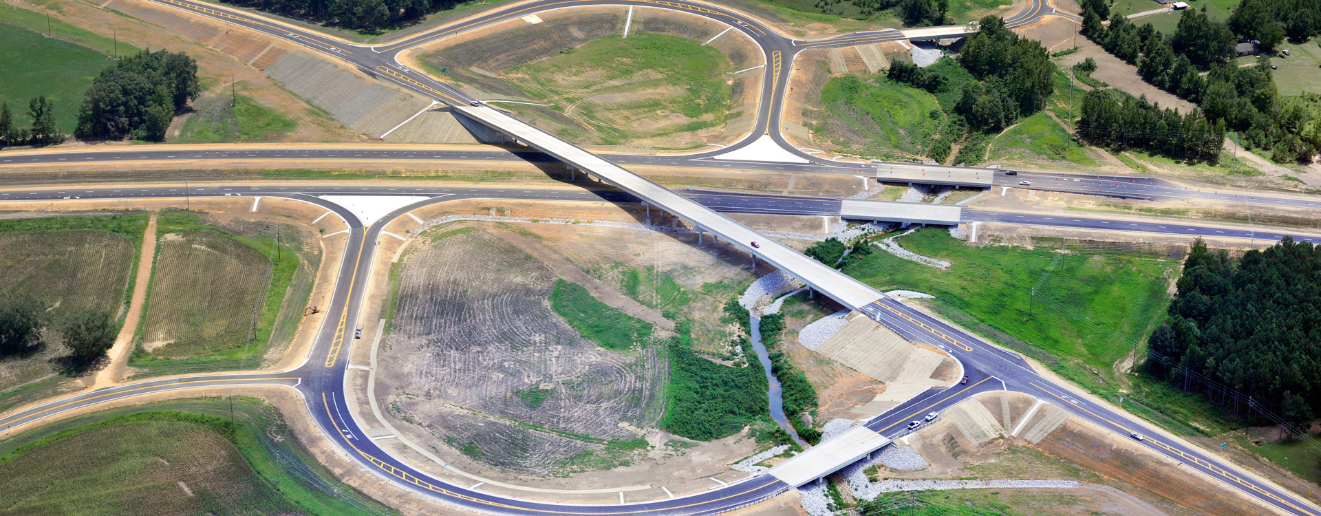 This award-winning, $88 million project was a four-lane divided, partial access control freeway featuring one Natchez Trace Parkway style interchange at Endville Road as part of this 9.5-mile new roadway system. The project included roadway plans for grading, drainage, and pavement to approximately 90 percent completion stage. Bridge design was completed to 100 percent final plans. Other services included design surveys, soil profiles, geotechnical studies for bridge sites, wetland delineation, and right-of-way acquisition and preparation of maps and deeds.