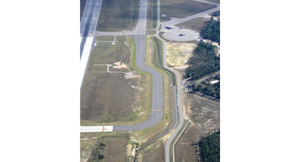 The project was designed with a main asphalt section outside of the Runway Safety Area, with an additive alternate for a concrete section. This allowed for GPT to construct the most cost-effective taxiway possible. After a life-cycle cost analysis, the asphalt section was awarded. The taxiway section inside the Runway Safety Area was designed as a concrete section due to the constraints of working within this sensitive area. Construction of the concrete section was completed at night, with the runway reopening each morning for normal operation. This required close coordination with Gulfport-Biloxi Airport Authority staff, airport operations, airport tenants, the Air National Guard, the FAA and the local FBO, Million-Air, to make sure that construction was completed in a safe manner while minimizing impacts to all stakeholders. Construction within the Runway Safety Area was limited to 60 nights for each of the north and south ends. We are proud to say that during this construction, no flights were delayed or canceled due to construction activities.