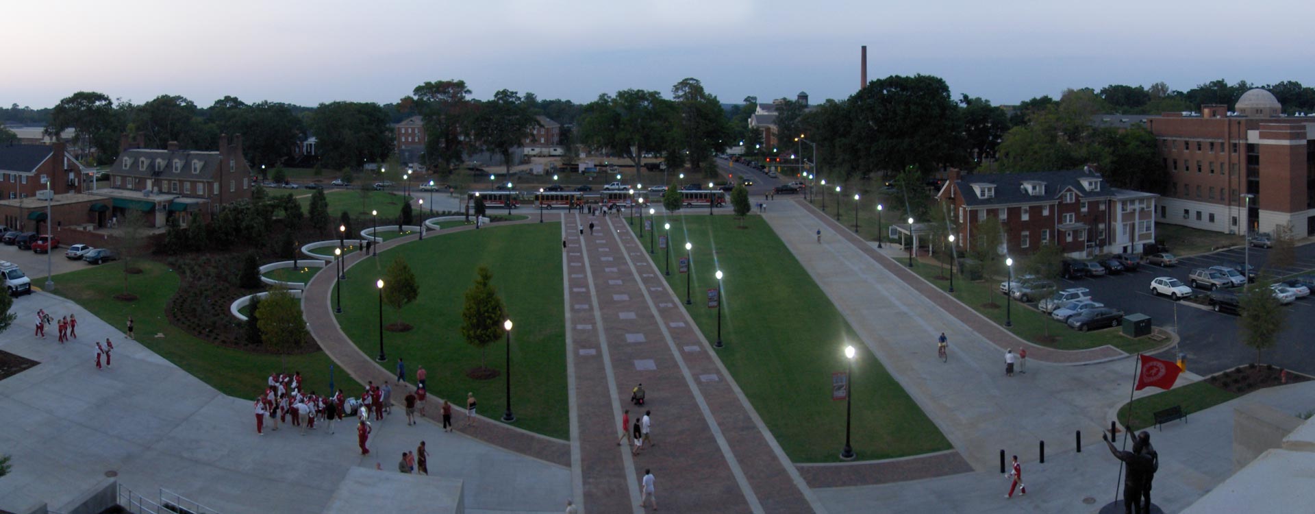 The Plaza provides a grand entrance to the north end of Alabama’s football stadium, Bryant-Denny Stadium, including a main 34-foot wide, lighted, brick-paved walkway that incorporates commemorative championship plaques into the brick paver layout. Additionally, it includes a nine-foot wide lighted, brick-paved sidewalk that provides access to larger than life-size statues of national championship winning coaches.