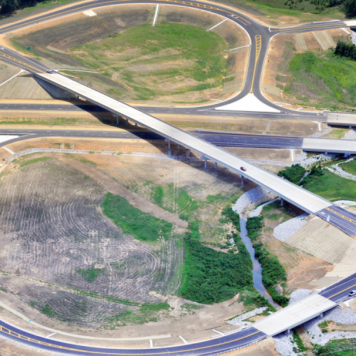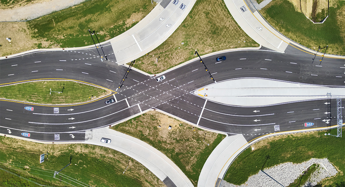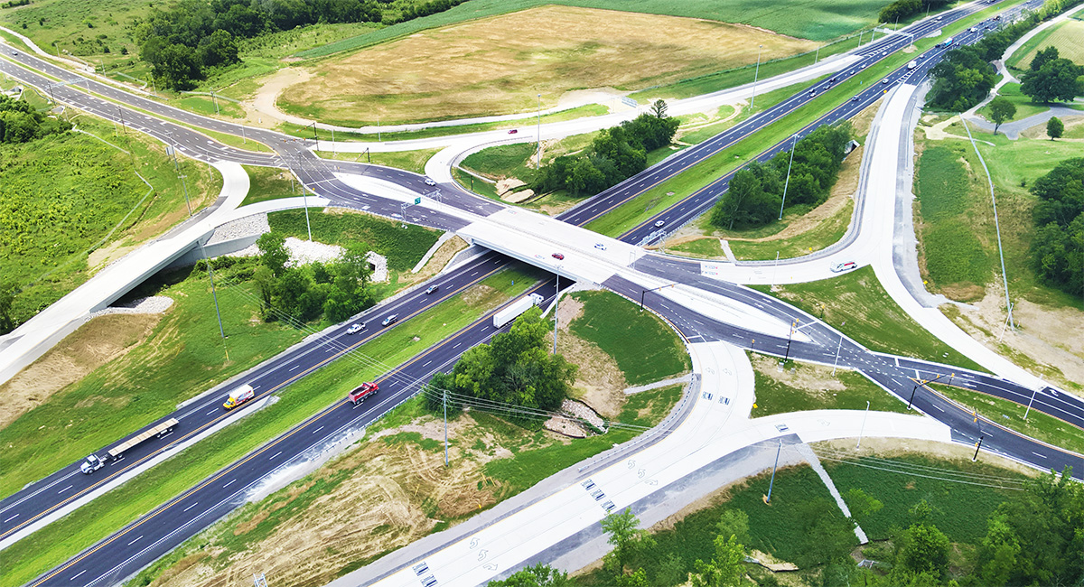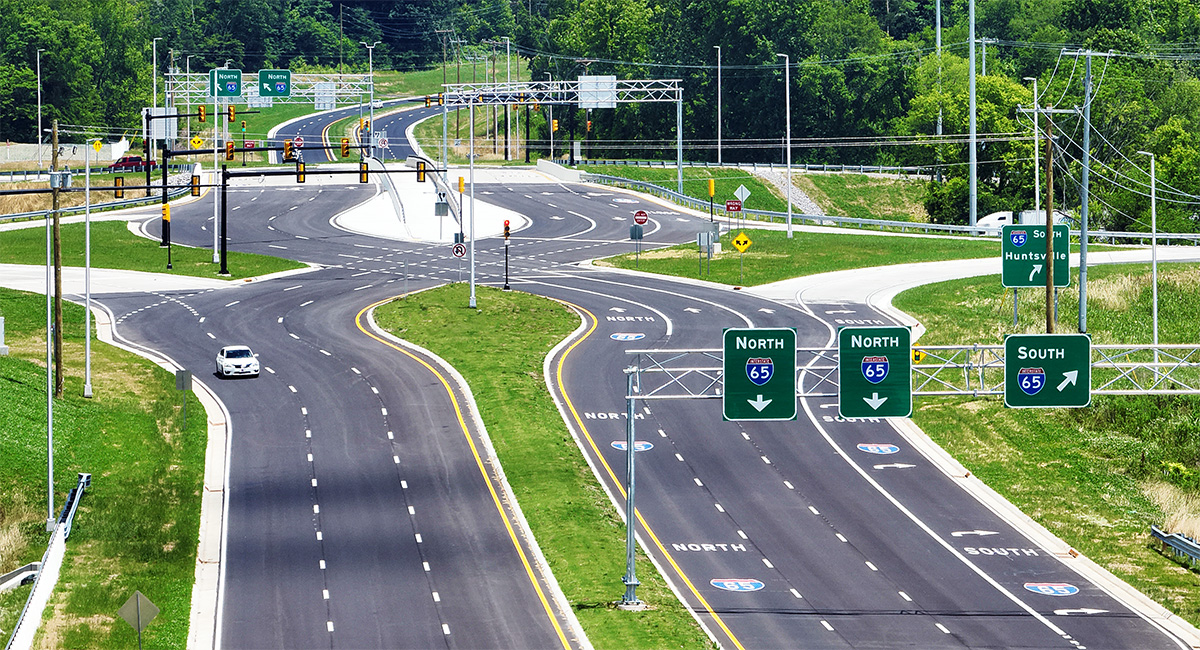Bell & Associates Construction was the contractor for the $56.8 million state-of-the-art diverging diamond interchange, which officially opened on May 31, 2024. The project included new roadway extensions, interstate resurfacing, drainage structures, bridges, new signals, permit preparation, erosion prevention, pavement markings, and signage.
