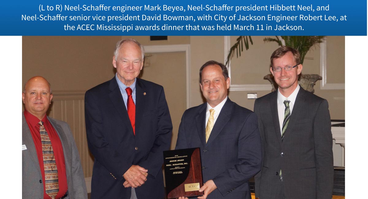 JACKSON, Miss. (March 16, 2016) — For helping transform the City of Jackson’s main downtown street into a more pedestrian- and business-friendly corridor, Neel-Schaffer, Inc., was honored by the Mississippi chapter of the American Council of Engineering Companies (ACEC/MS).
