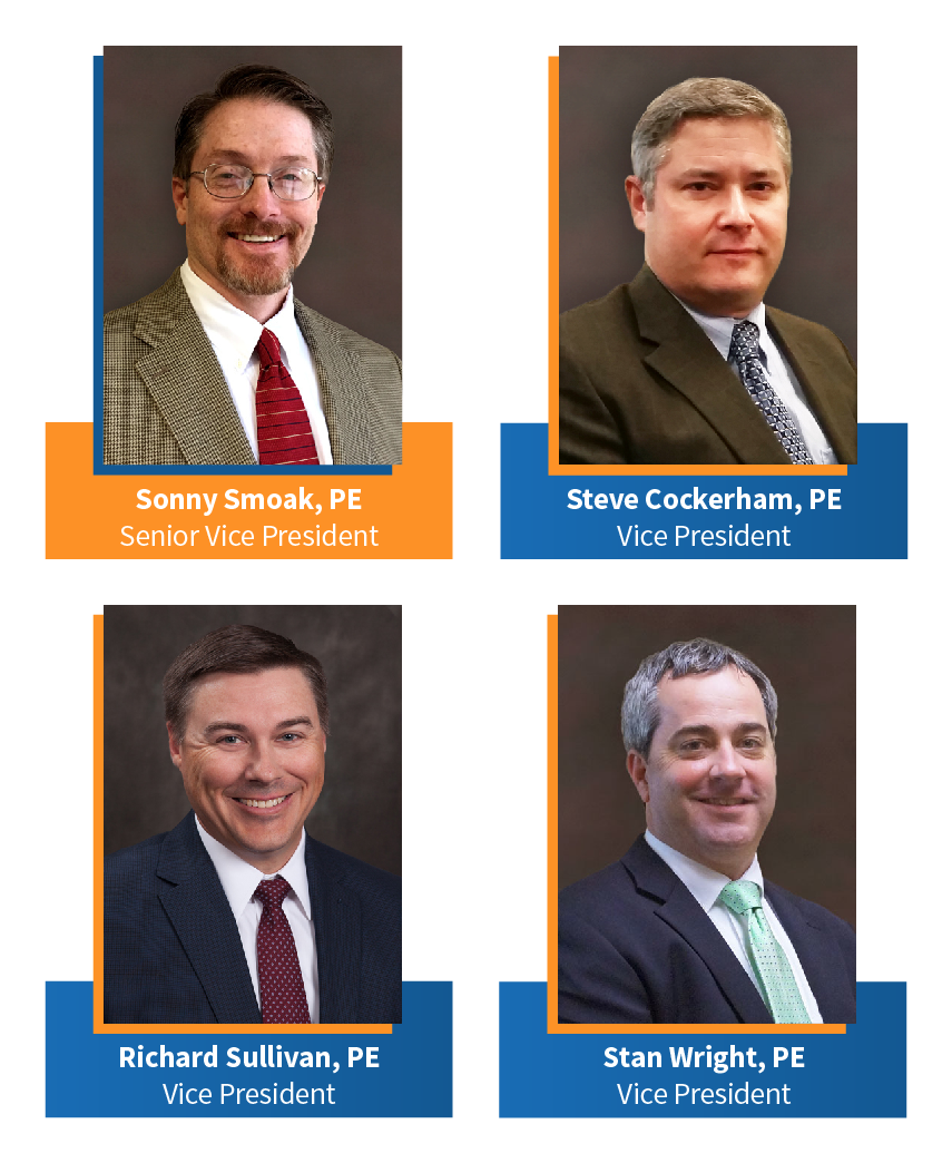 JACKSON, Miss. (January 16, 2019) – Neel-Schaffer, Inc., is pleased to announce that Sonny Smoak, PE, has been promoted to a Senior Vice President role, and Steve Cockerham, PE, Richard Sullivan, PE, and Stan Wright, PE, are now Vice Presidents with the firm.