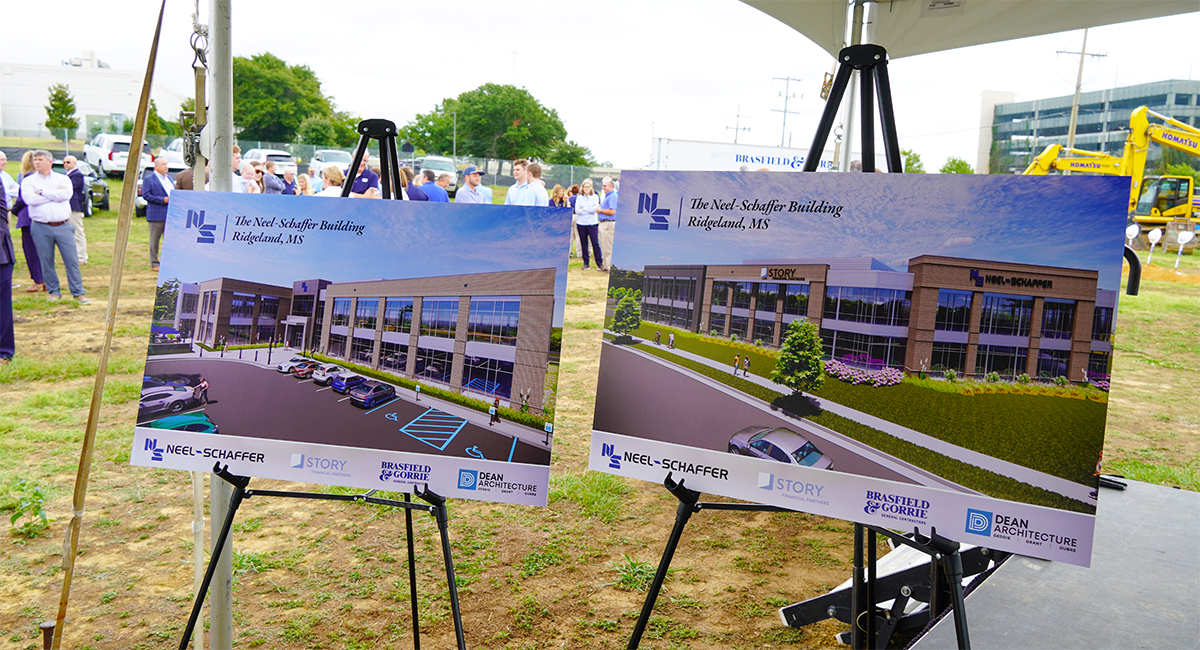 RIDGELAND, Miss. (October 7, 2025) — Neel-Schaffer today broke ground on its new headquarters in the City of Ridgeland, marking a major milestone in the firm’s long-term growth strategy and commitment to the Jackson Metro area. The 30,000 square foot Neel-Schaffer Building, located at the corner of Highland Colony Parkway and Steed Road, will bring together the company’s Jackson, Madison, and Ridgeland offices under one roof when it opens in February 2027.